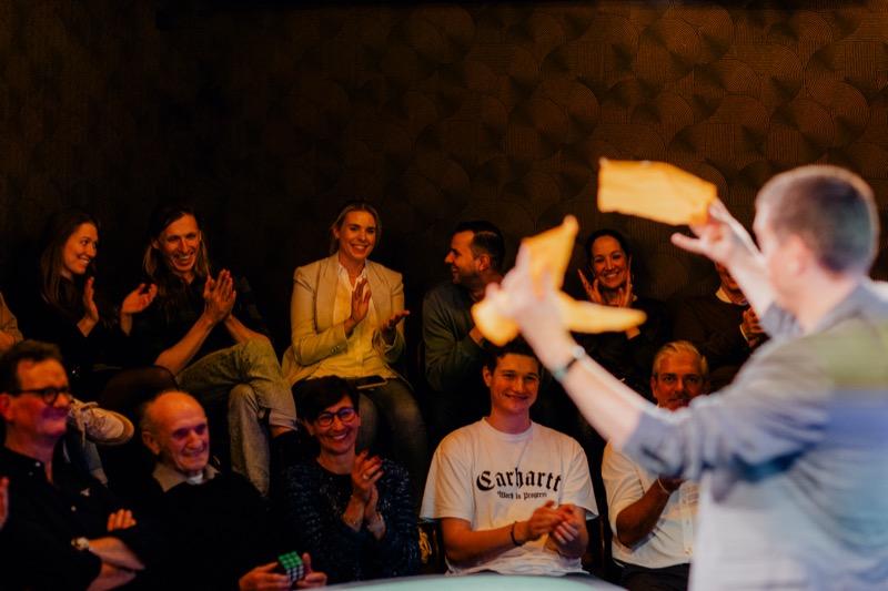 Nach einem Empfangsgetränk in der Galerie erwartet euch eine exklusive und interaktive 75-minütige Show im magischen Ambiente des „Secret Showrooms“.